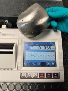 Satin finish (Ra 0.35um): our recommended option—low Ra values with a tactile surface that will not pinch surgical gloves.